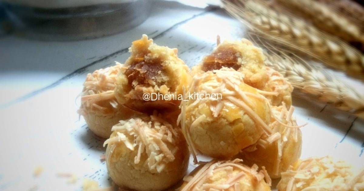 SUPER SALE iNastar Nastar Nanas PREMIUM Classy Nastar. Resep Kastengel Tanpa Telur. - 200 gr unsalted butter mentega tawar - 100 gr margarin - 3 btr kuning telur - 1 sdt garam - 1 sdt kaldu ayam bubuk - 250 gr keju tua bisa memakai keju parmesan edam gouda diparut - 50 gr susu bubuk full cream - 450 gr tepung terigu protein rendah Bahan olesan topping.